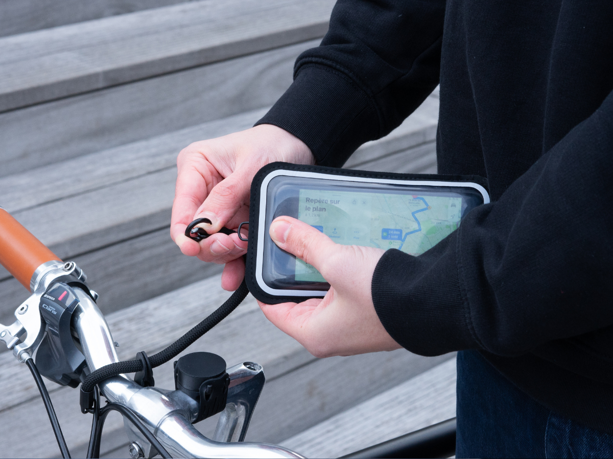 Première utilisation de notre support téléphone ? Rassurez-vous en installant le cordon de sécurité autour de votre guidon. Puis, laissez notre système magnétique vous prouver qu'il n'y avait pas d'inquiétude à se faire. - Pratique :