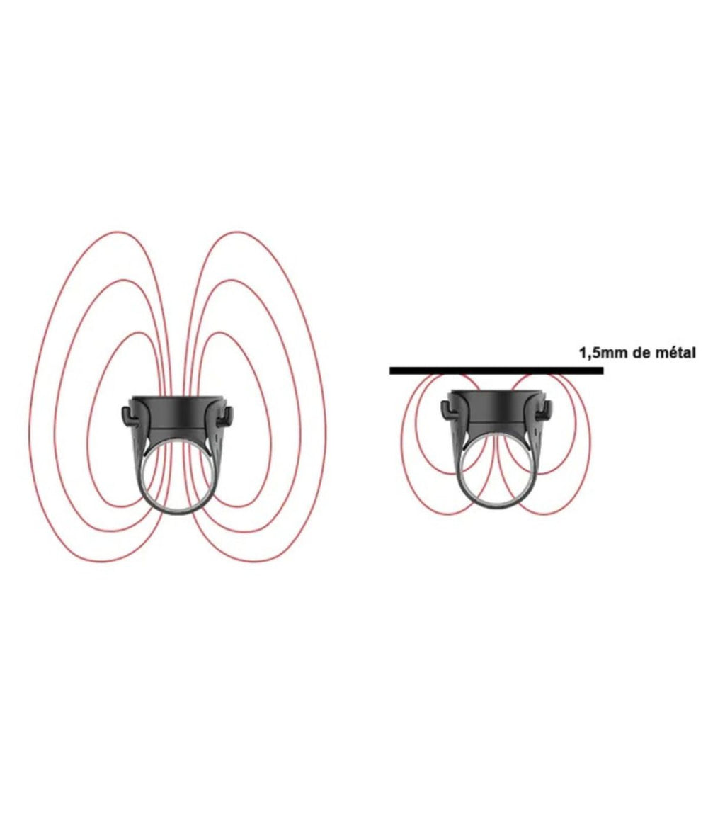 En effet, il est important de remarquer qu’il y a une plaque métallique d’1,5mm du côté du téléphone. Cette plaque métallique bloque totalement le champ magnétique.