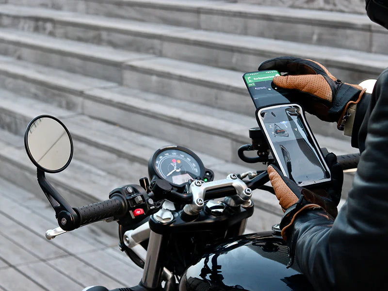 Et c'est d'ailleurs ce qui nous différencie de nos concurrents. Du fait de la pochette, les vibrations du moteur et de la route sont absorbées et n'endommagent pas le stabilisateur de l'appareil photo du téléphone.