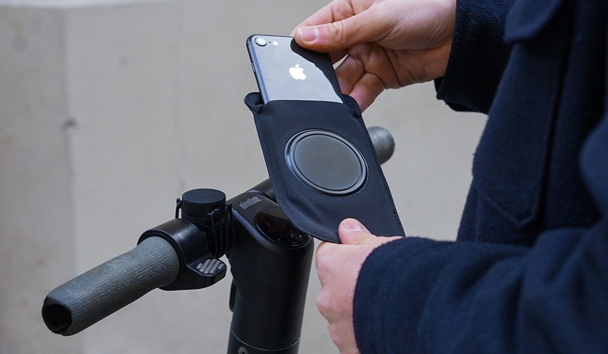 Discret le support de téléphone a été conçu en tenant compte de la stabilité et la sécurité de votre téléphone sans abîmer votre trottinette.