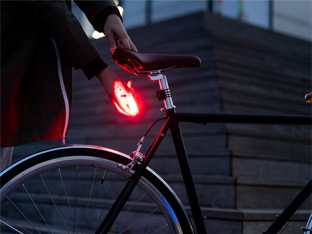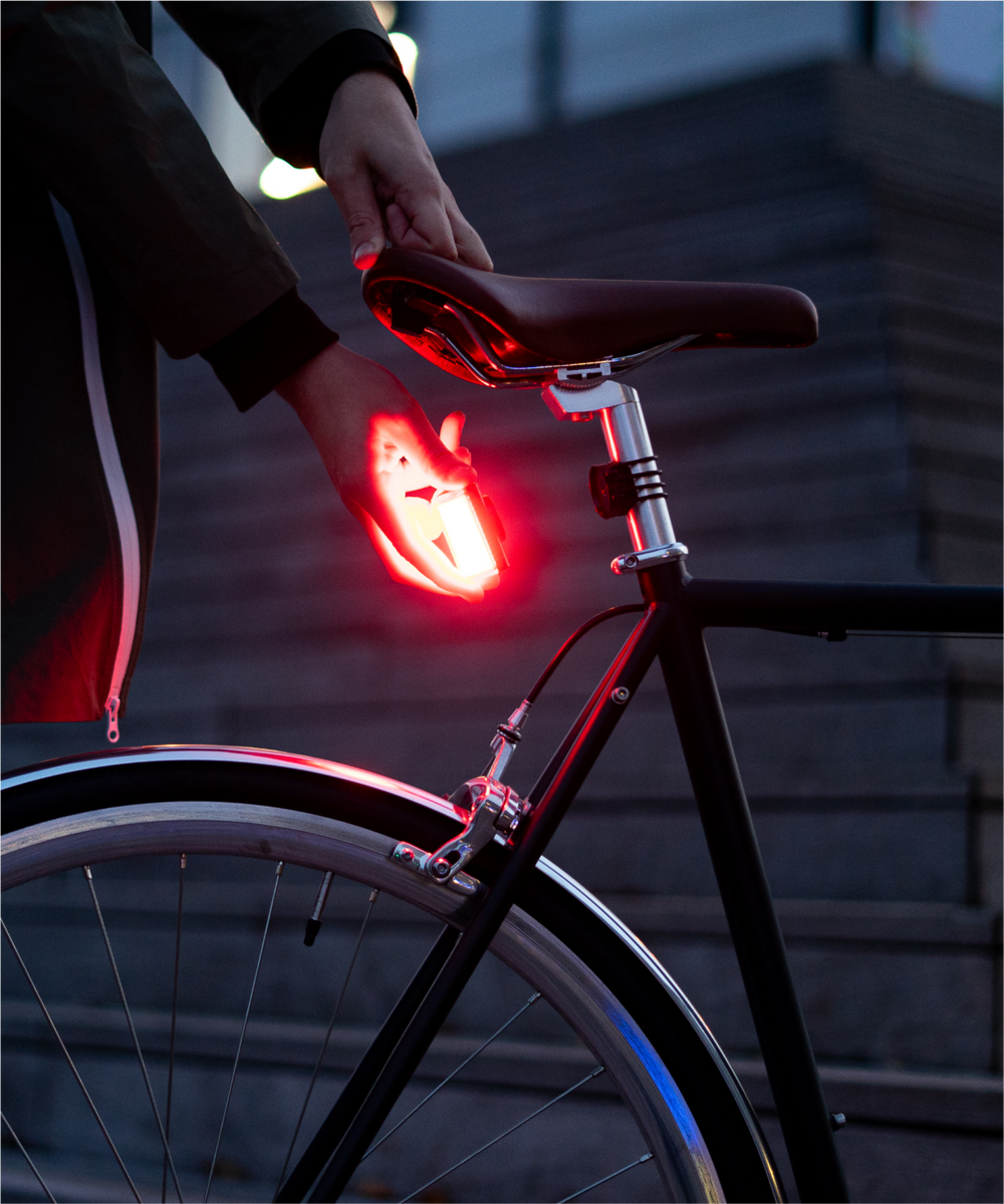 En un seul geste et seulement quelques secondes : placez et retirez la lumière sur votre vélo.