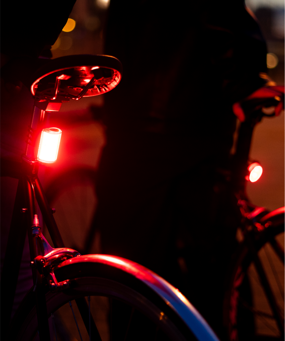 En fin de journée ou de nuit, lorsque la lumière du jour est faible, être vu à vélo est primordial pour la sécurité. C'est vrai pour être vu de face ou de dos mais également pour être vu de côté. C'est pourquoi les lumières magnétiques Shapeheart, avant et arrière, sont panoramiques à 300°.