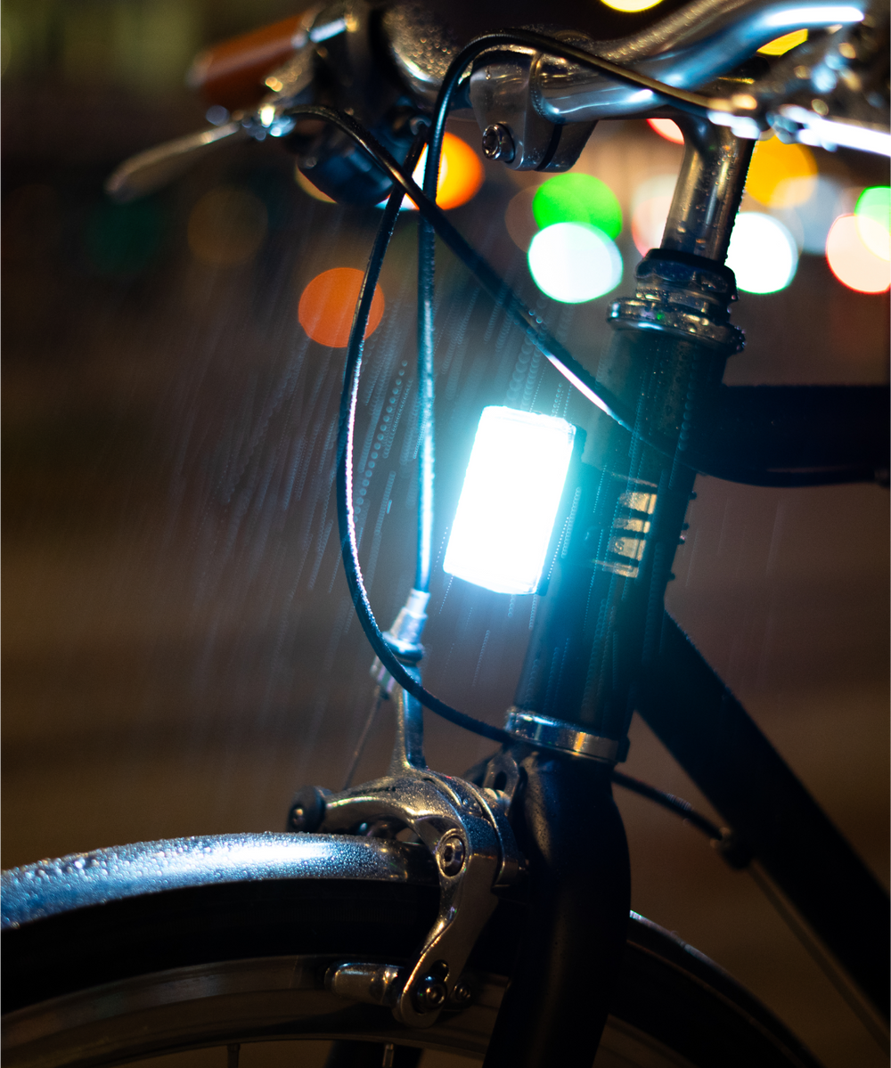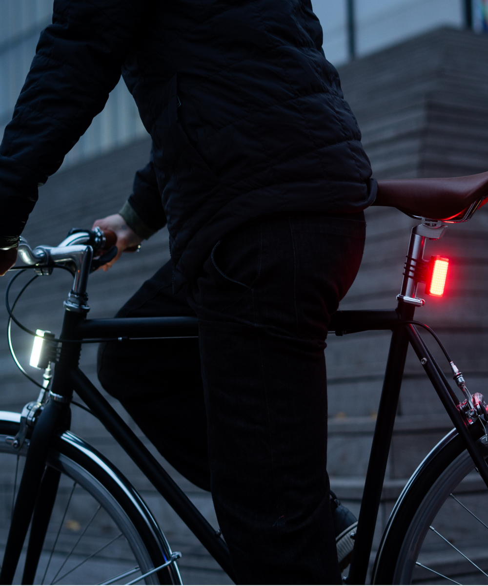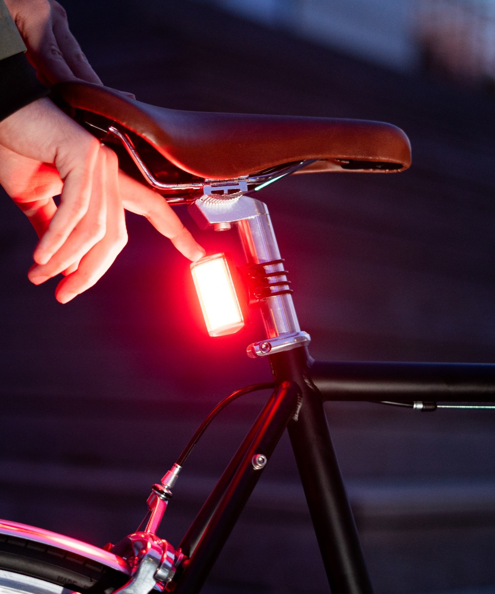 En un seul geste et seulement quelques secondes : placez et retirez les lumières sur votre vélo.