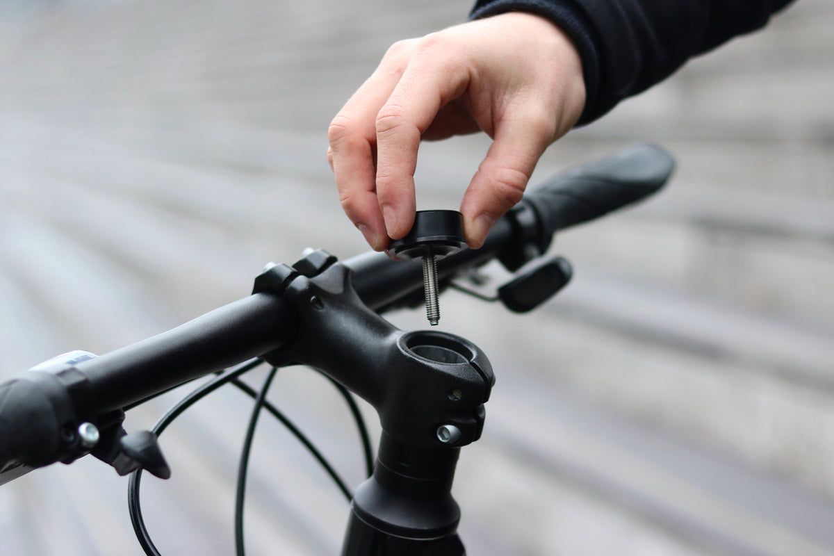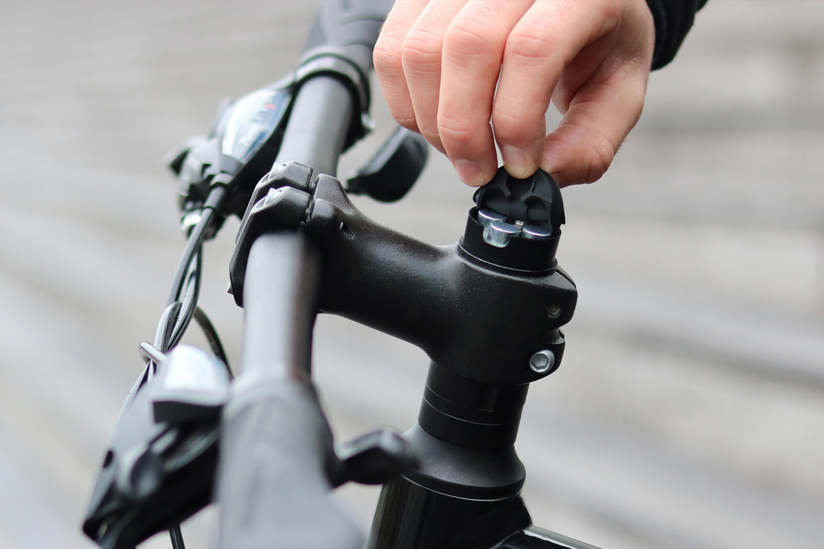 1. À l’aide de la clé Allen, dévissez le cache de la potence et positionnez le support dans le tube de fourche.