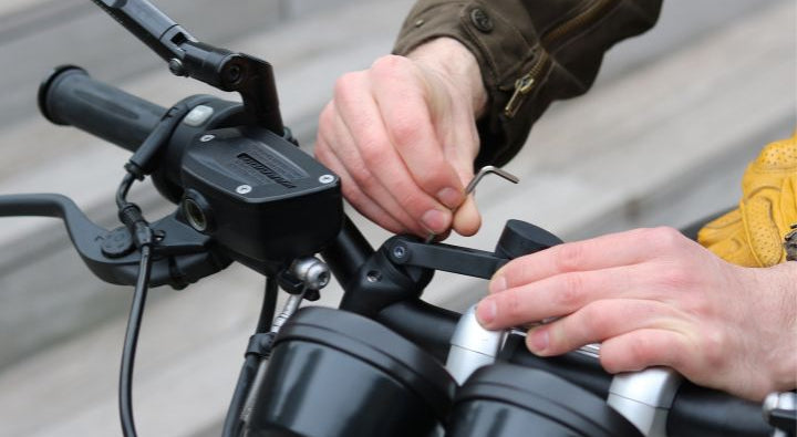 2. Positionnez l’adaptateur sur le guidon, puis vissez le support par dessus, à l’aide de la clé Allen.