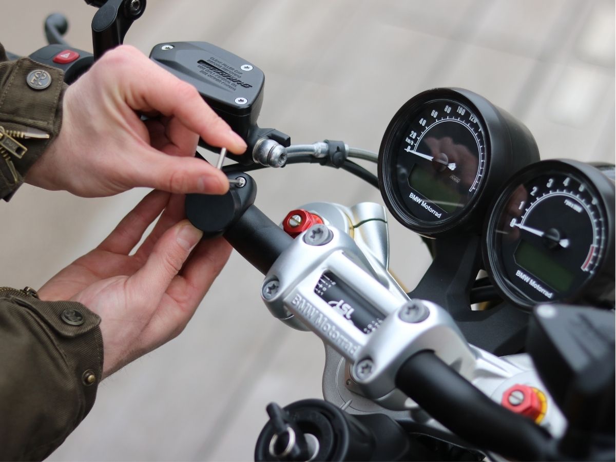 2. Positionnez l’adaptateur sur le guidon, puis vissez le support par dessus, à l’aide de la clé Allen.